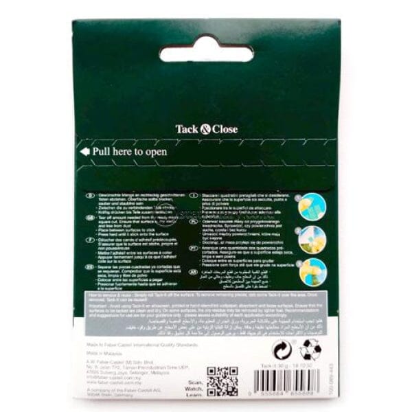 Faber Castell Tack It Reusable & Removable Adhesive Glue 30 gr Green #187052 adalah perekat serbaguna yang dapat digunakan di setiap permukaan bersifat removable sehingga anda dapat memindahkan dan kemudian ditempel kembali. Berisi 42 kotak kecil perekat. Harga tertera per pak